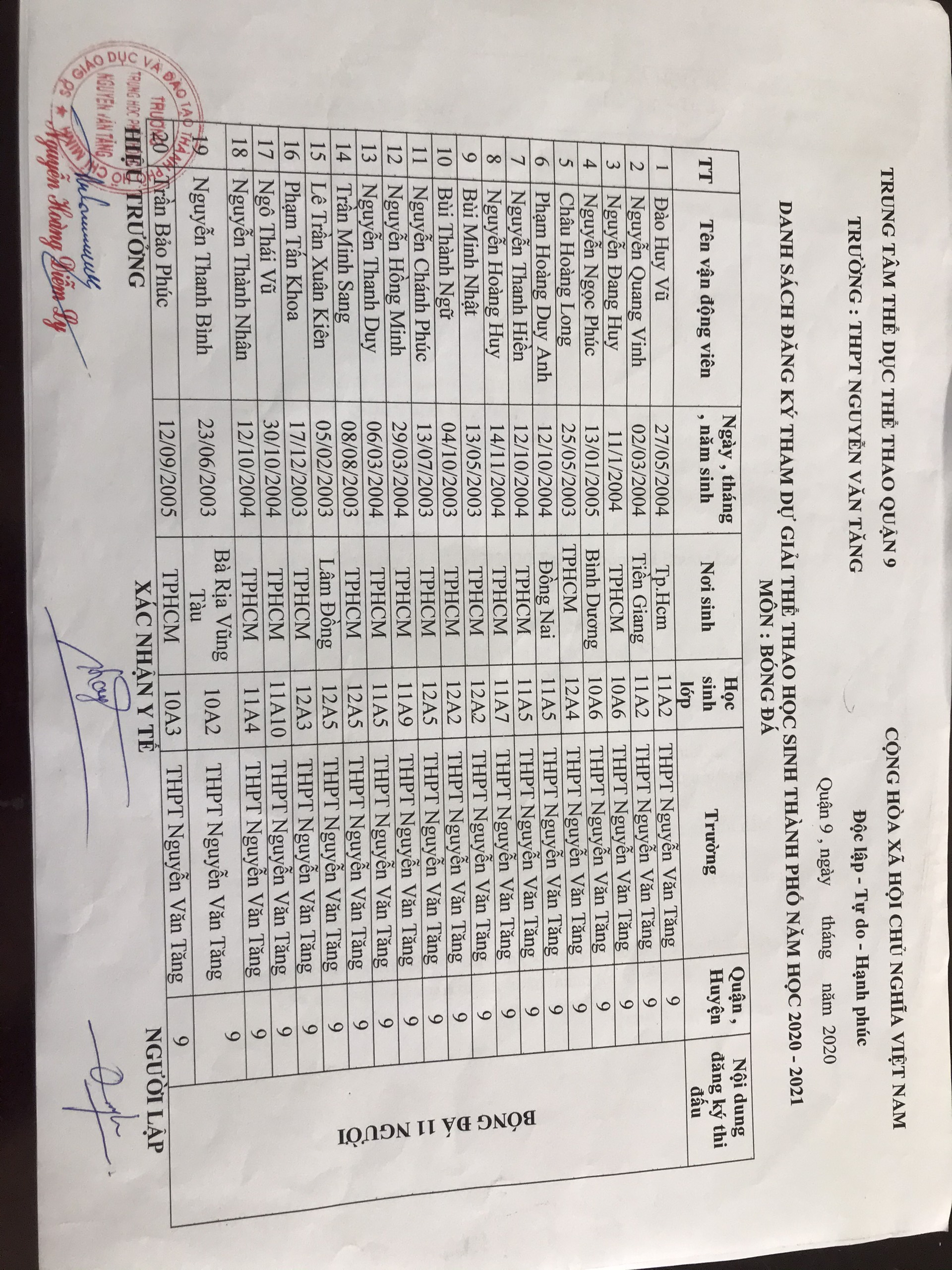 DANH SÁCH HỌC SINH THAM GIA TRẬN BÁN KẾT MÔN BÓNG ĐÁ CẤP QUẬN